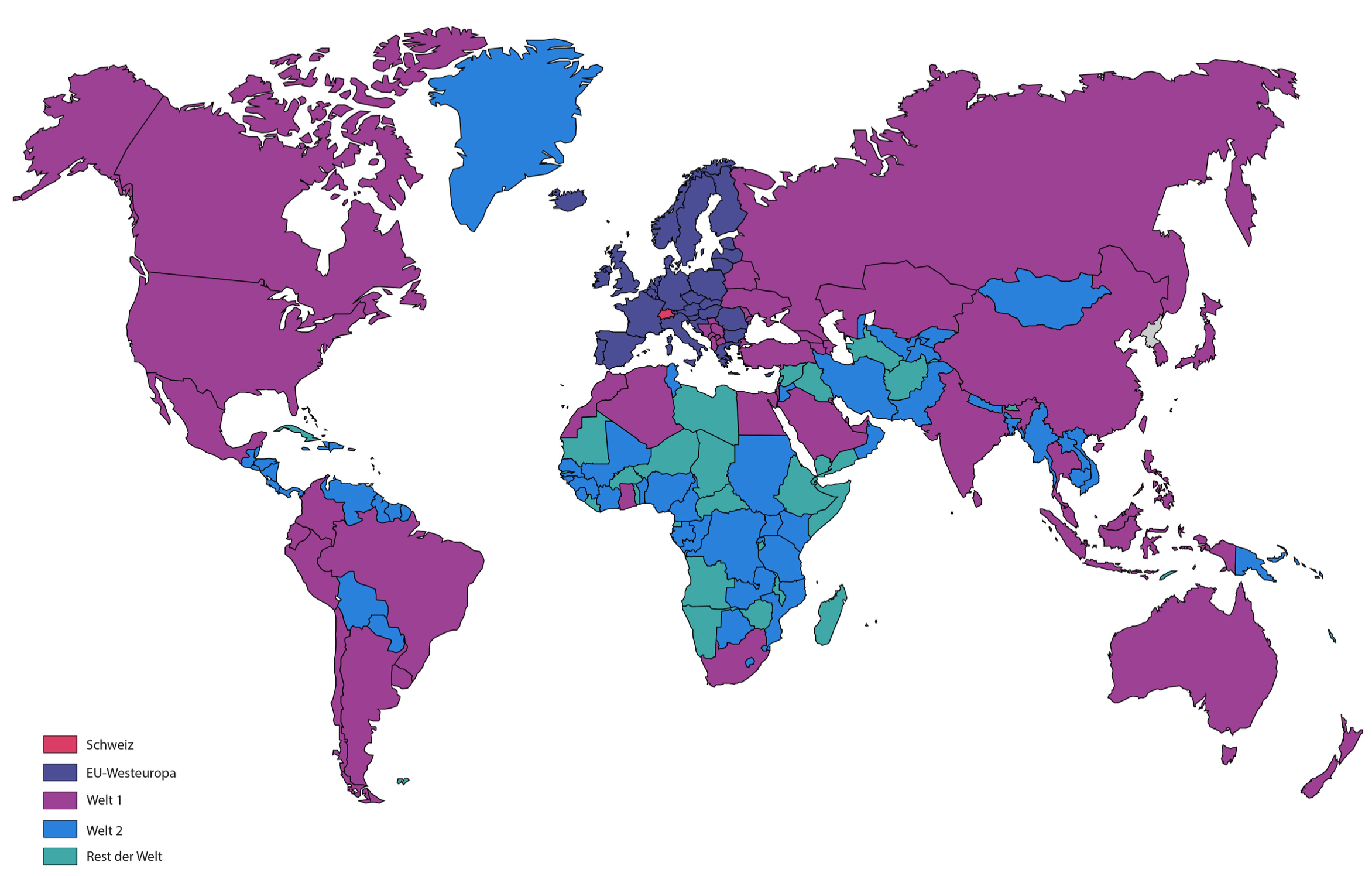 Die Schweizer Anbieter teilen die Länder weltweit in einzelne Zonen ein. Pro Zone gilt in der Regel der gleiche Preis. Allerdings ist die Zoneneinteilung nicht bei allen Anbietern gleich. dschungelkompass zeigt mit folgender Tabelle auf, was 1 GB Datenroaming in den einzelnen Ländern kostet: