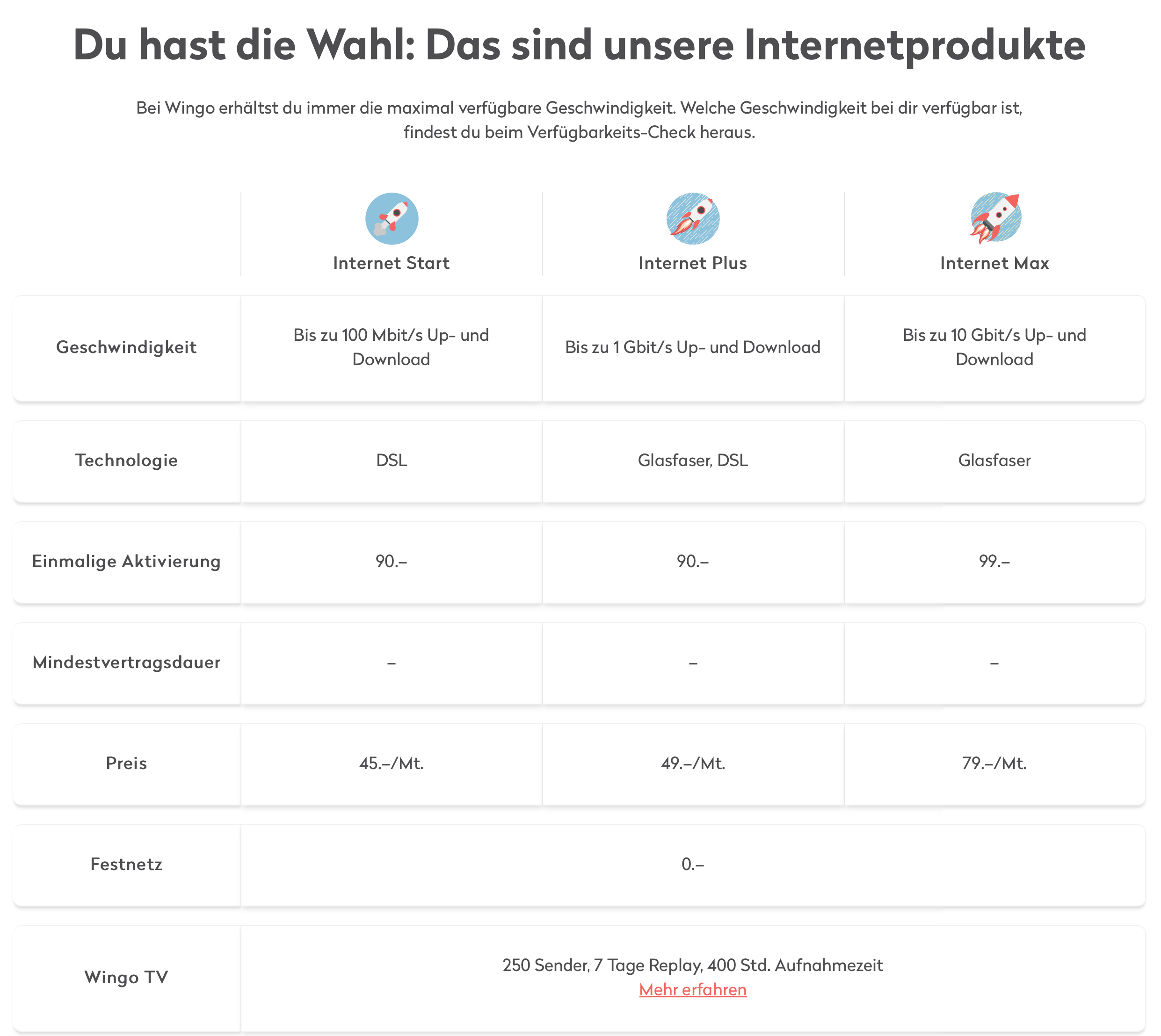 Wingo hat neu ein Internet-Abo mit 100 Mbit/s für CHF 45.- lanciert. Im Gegenzug kostet das TV-Abo neu CHF 15.- anstatt 5.-.