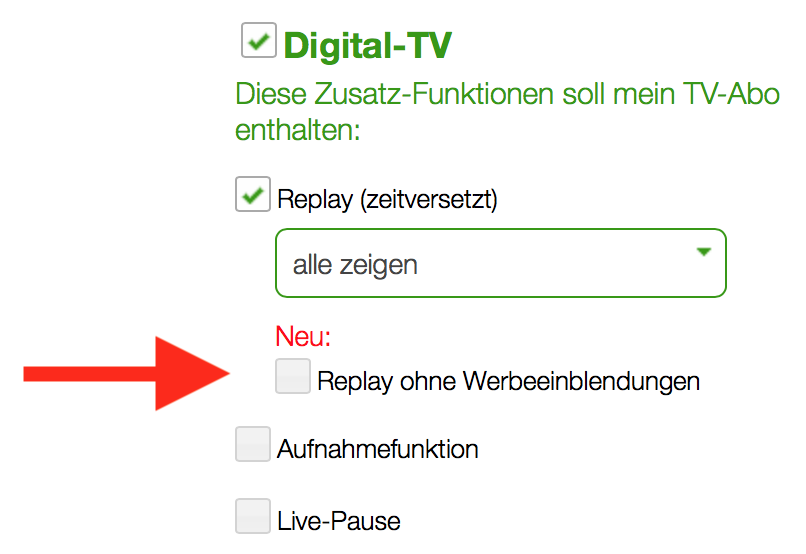 Die neuen Zusatzoptionen für werbefreies Replay wurden inzwischen im Internet- und TV-Abo-Vergleich integriert. So können alle Angebote miteinander verglichen werden.