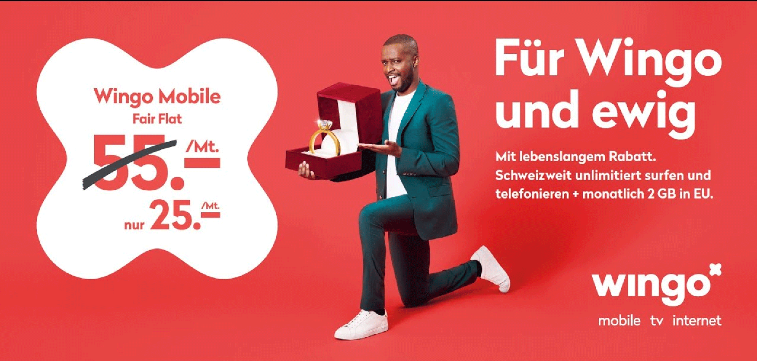 Auf dem aktuellen Werbeplakat steht jetzt allerdings «Für Wingo und ewig», aber auch «mit lebenslangem Rabatt»: