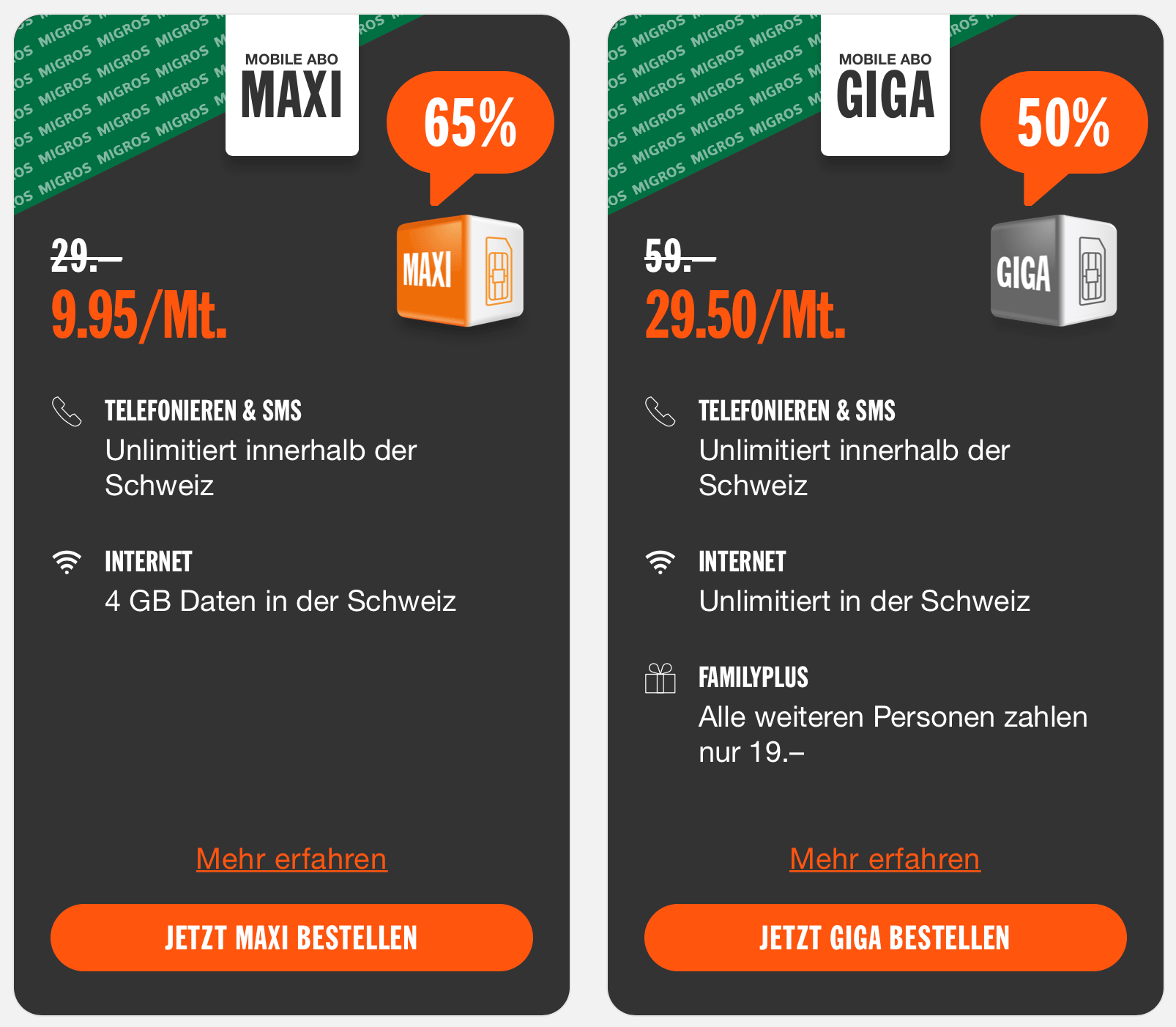 - FamilyPlus: Jedes weitere Giga-Abo im selben Haushalt ist für 19.− erhältlich
